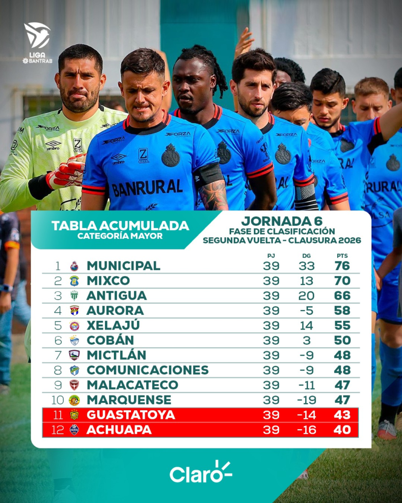 En la tabla acumulada, el panorama del descenso ha dado un giro inesperado. Equipos como Mictlán y Marquense, que hace apenas unas jornadas parecían condenados, ahora respiran con mayor tranquilidad. En contraste, Achuapa y Guastatoya comienzan a ver de cerca el descenso, con un margen cada vez más reducido para revertir su situación.