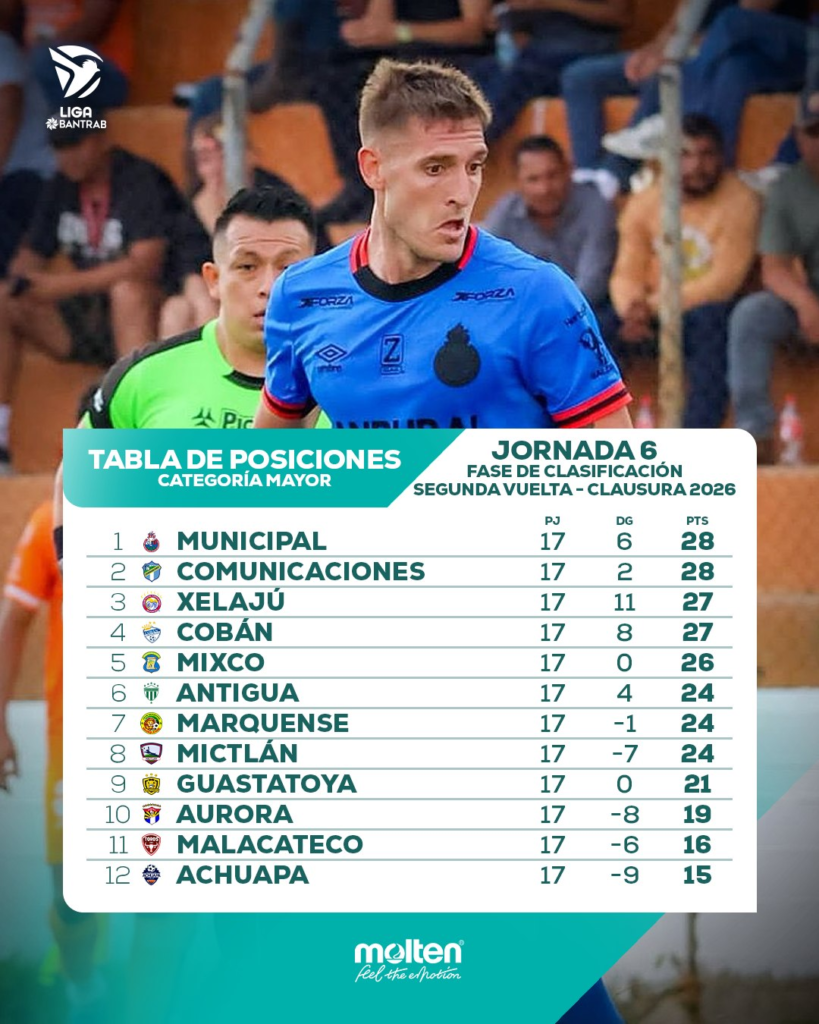 En la parte alta de la tabla, Municipal y Comunicaciones igualan en puntos, ubicándose en el primer y segundo puesto respectivamente, en una cerrada lucha por el liderato. Por su parte, Xelajú MC se mantiene en la tercera posición, consolidándose como uno de los equipos más regulares del campeonato.
