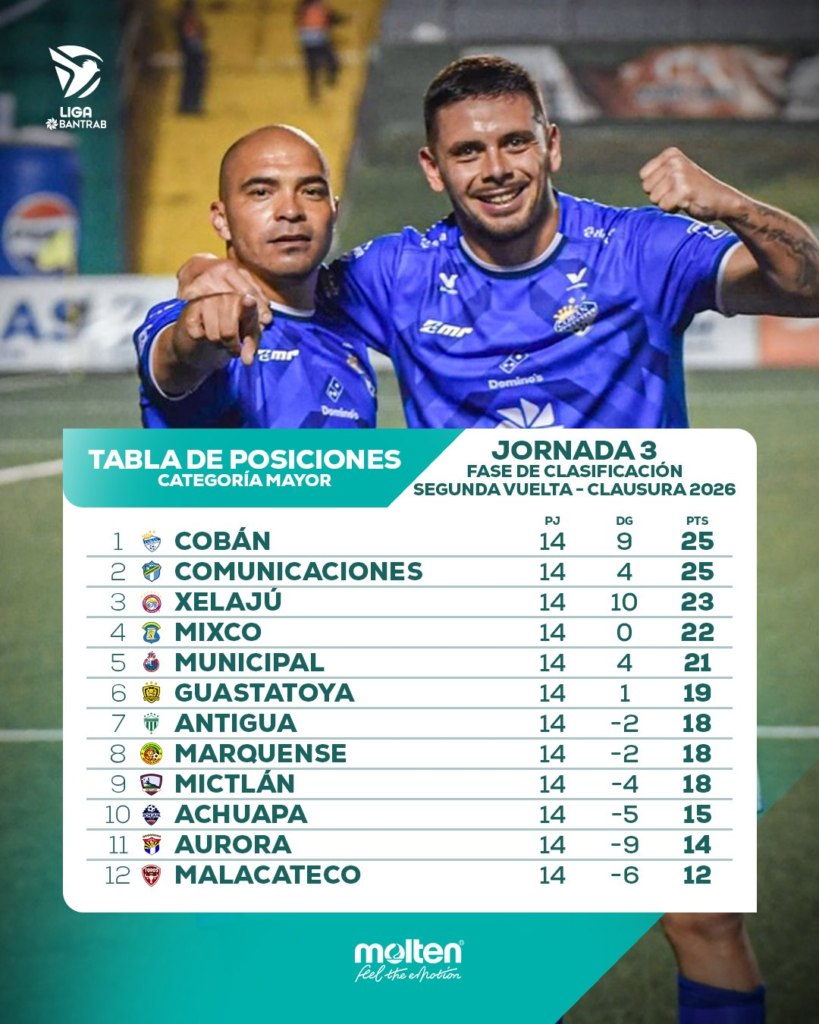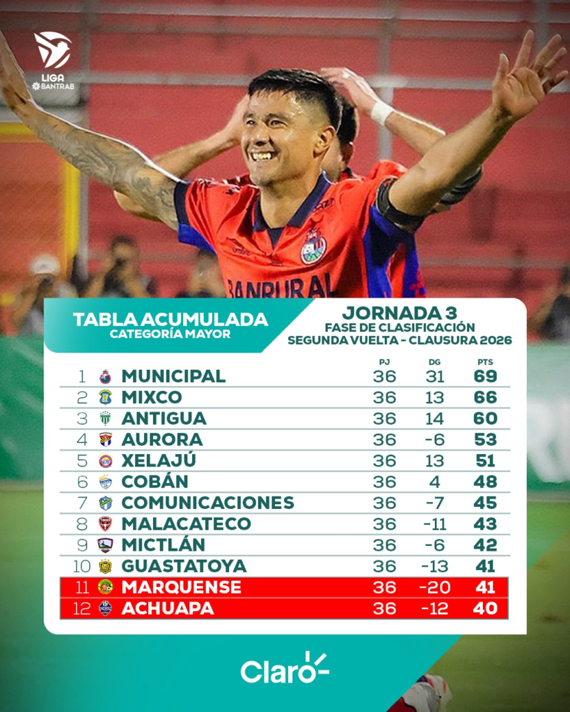 La presión no solo recae sobre los equipos del fondo. Tanto Malacateco como el propio Comunicaciones deberán mantenerse atentos, ya que la tabla comienza a comprimirse y cualquier tropiezo podría complicar seriamente su situación.